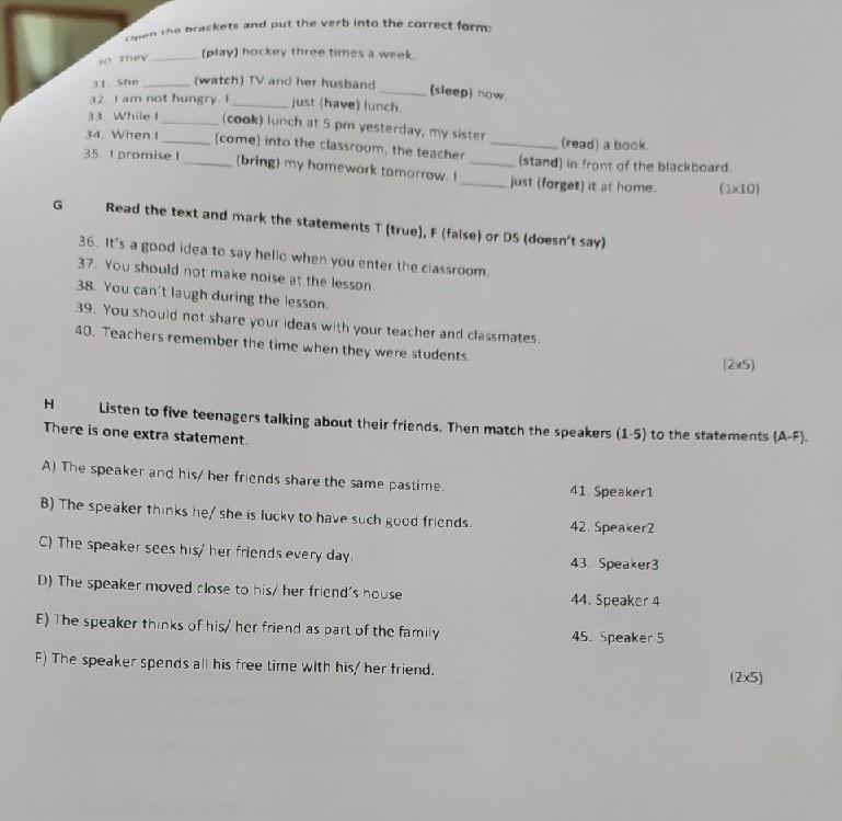 30.play 31.is watching, is sleeping 32.I have just had lunch 33.was cooking, was reading 34.came, was standing 35.will bring.I have just forgotten it at home