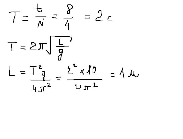 определить длину математического маятника, совершающего четыре полных полебания за время, равное 8с