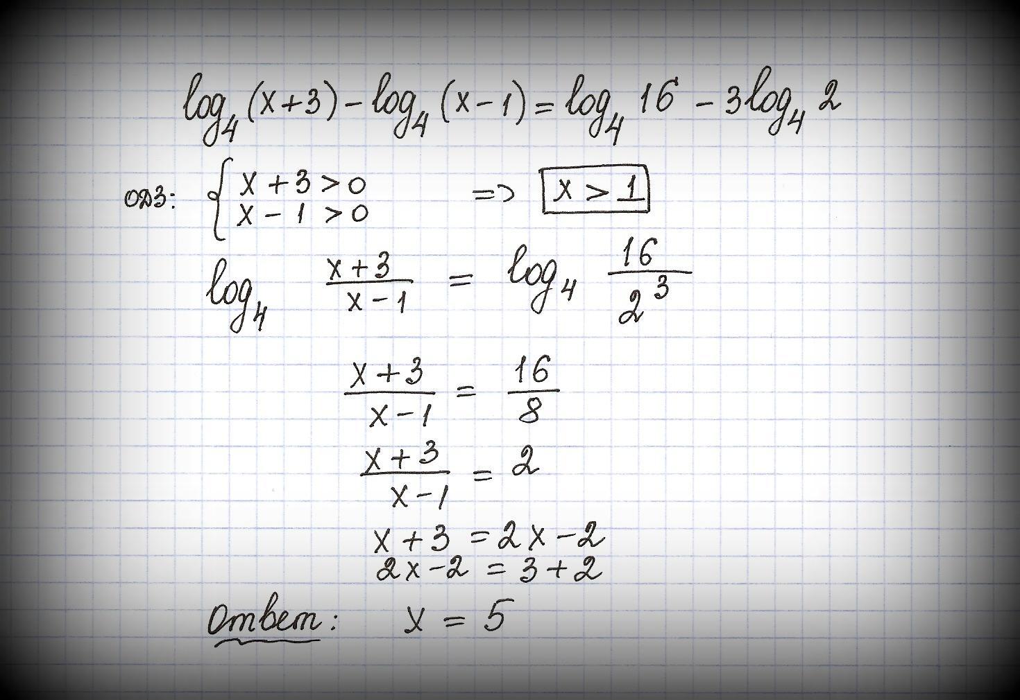 Объяснение: { ㏒( (x+3)/(x-1))=㏒(16/2³) ,x>1 (основание ㏒ --пиши 4)