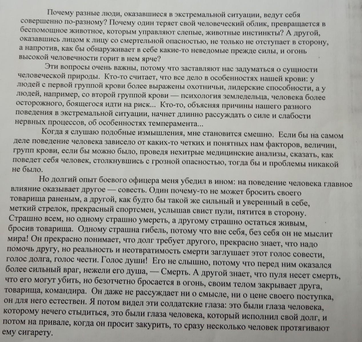 Но долгий опыт боевого офицера меня убедил в ином: на поведение человека главное