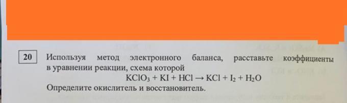 Cl(+5) +6e -> Cl(-) 1 в-ие