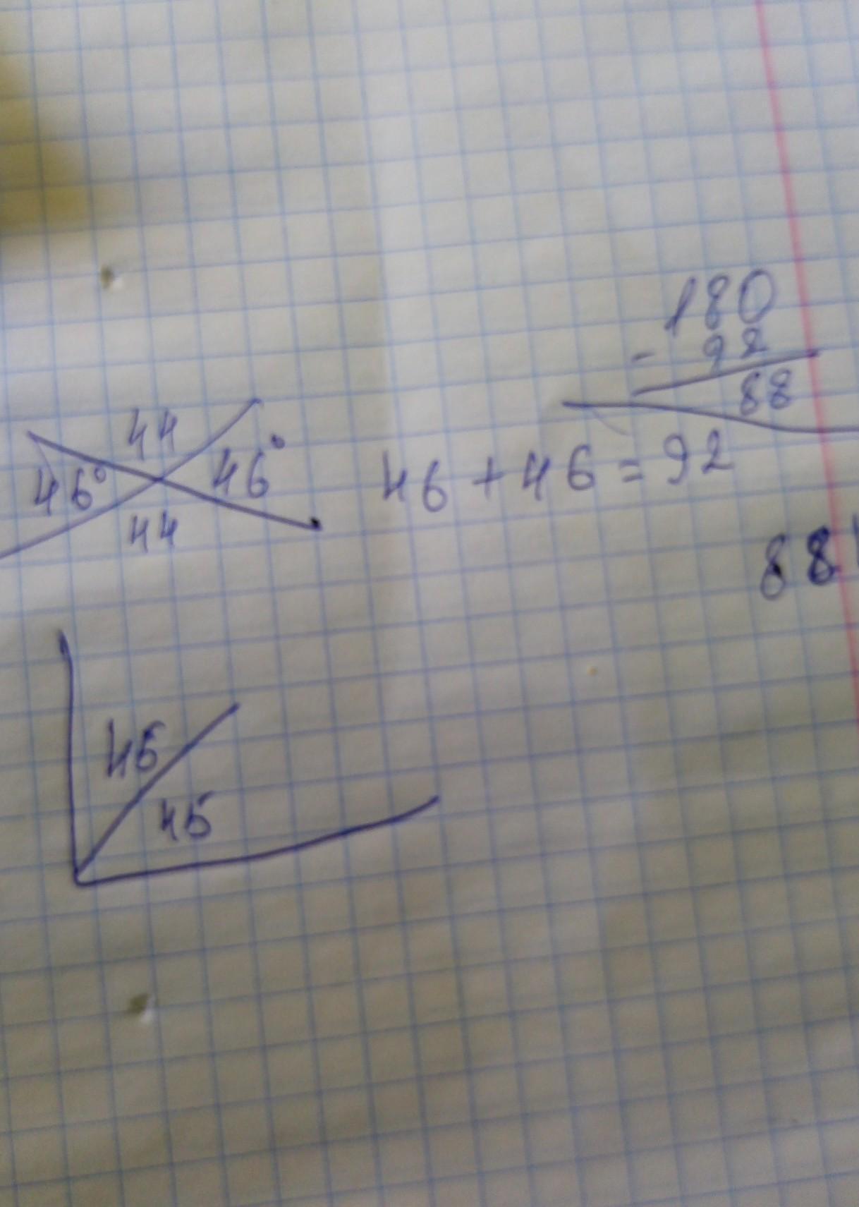 Слева по середине угл вертикален углу справа, получается, что он 46°
