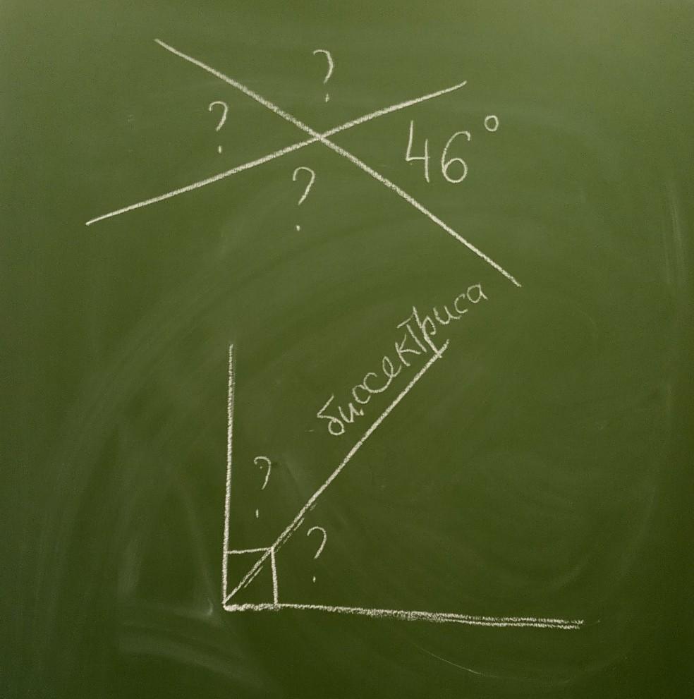 ЧТОБЫ найти угол вверху от 180 отнимаем 46: