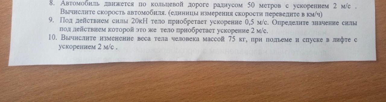 10. Для этого опять есть формулы. F1=m(g-a) при ускоренном движении вниз (формула для невесомости) и F2=m(g+a) для движение вверх с ускорением( формула перегрузки).
