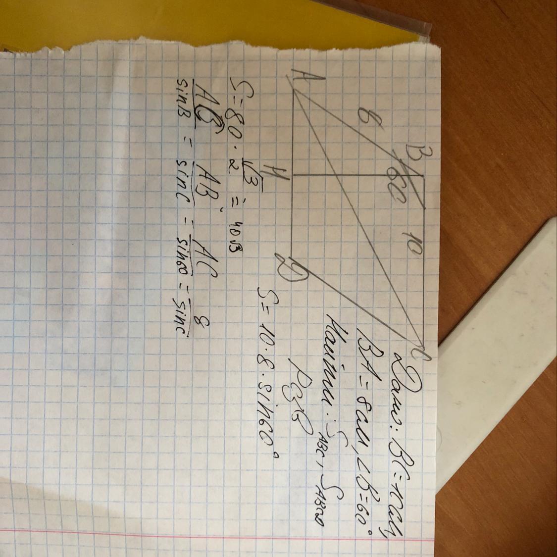 Найти: площадь треугольника S(ABC) и площадь параллелограмма S(ABCD) .