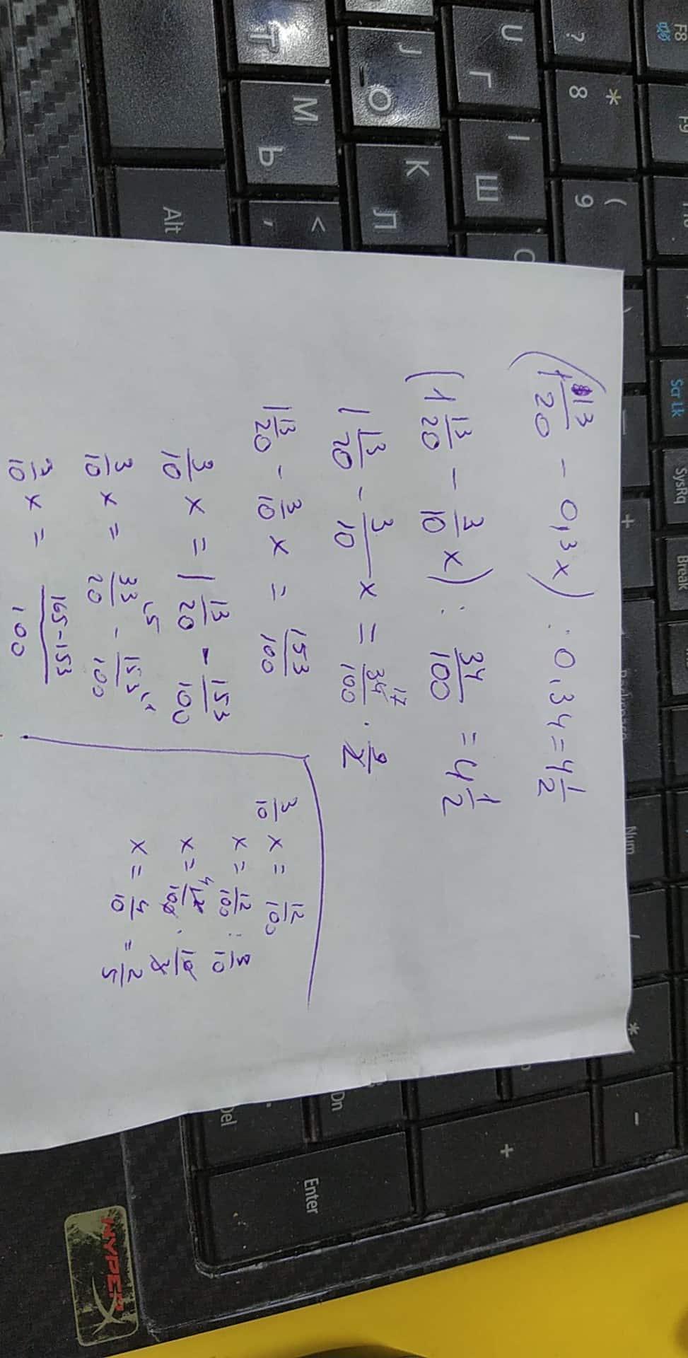(1целая 13/20 - 0,3х) ÷ 0,34 = 4целых 1/2
