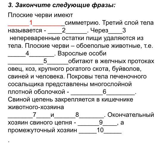 3.Через рот непереваренные остатки пищи удаляются из тела.4.Плоские черви обоеполые животные (т.е они трёхслойные животные)