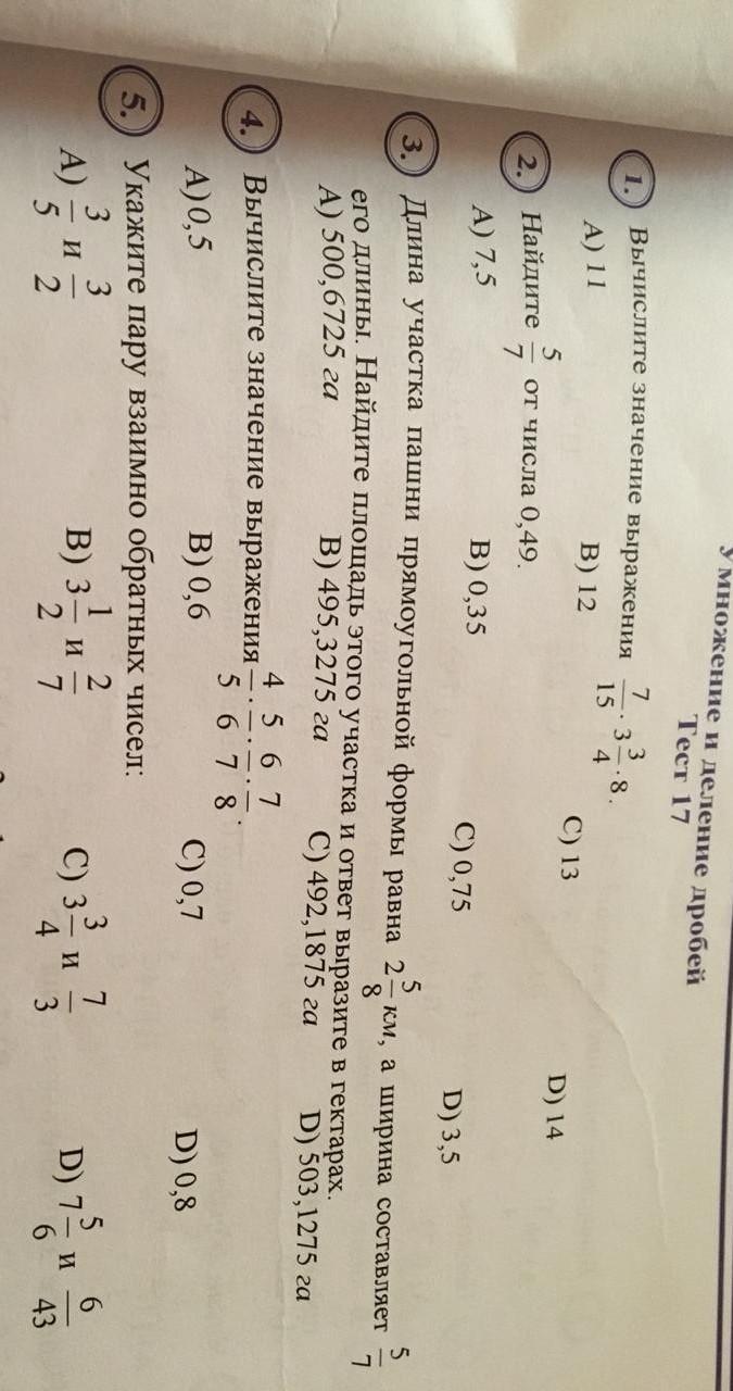 2) 5/7 * 0.49 = (0.49 / 7) * 5 = 0.7 * 5 = 0.35 Ответ: B