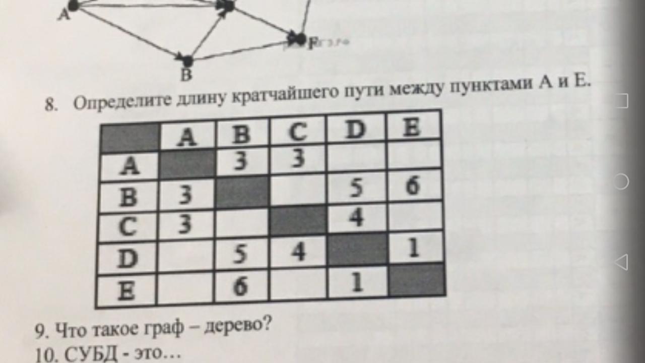 сначало из A в С=3 потом из С в D=4 потом из D в Е=1
