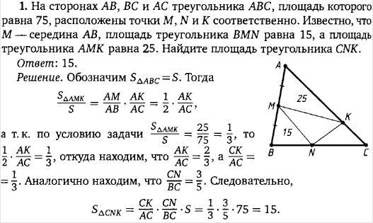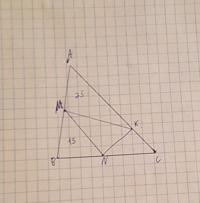 Не могу понять))На сторонах AB, BC и AC треугольника ABC , площадь которого равна 75, расположены точки M, N и К соответственно.