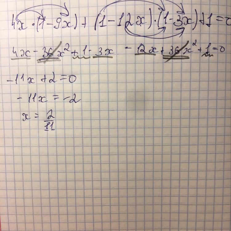 4х(1-9х)+(1-12х)(1-3х)+1=0