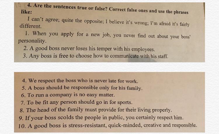5. I'm afraid it's not right. A boss is always responsible for his company and his employees, as well for his family.