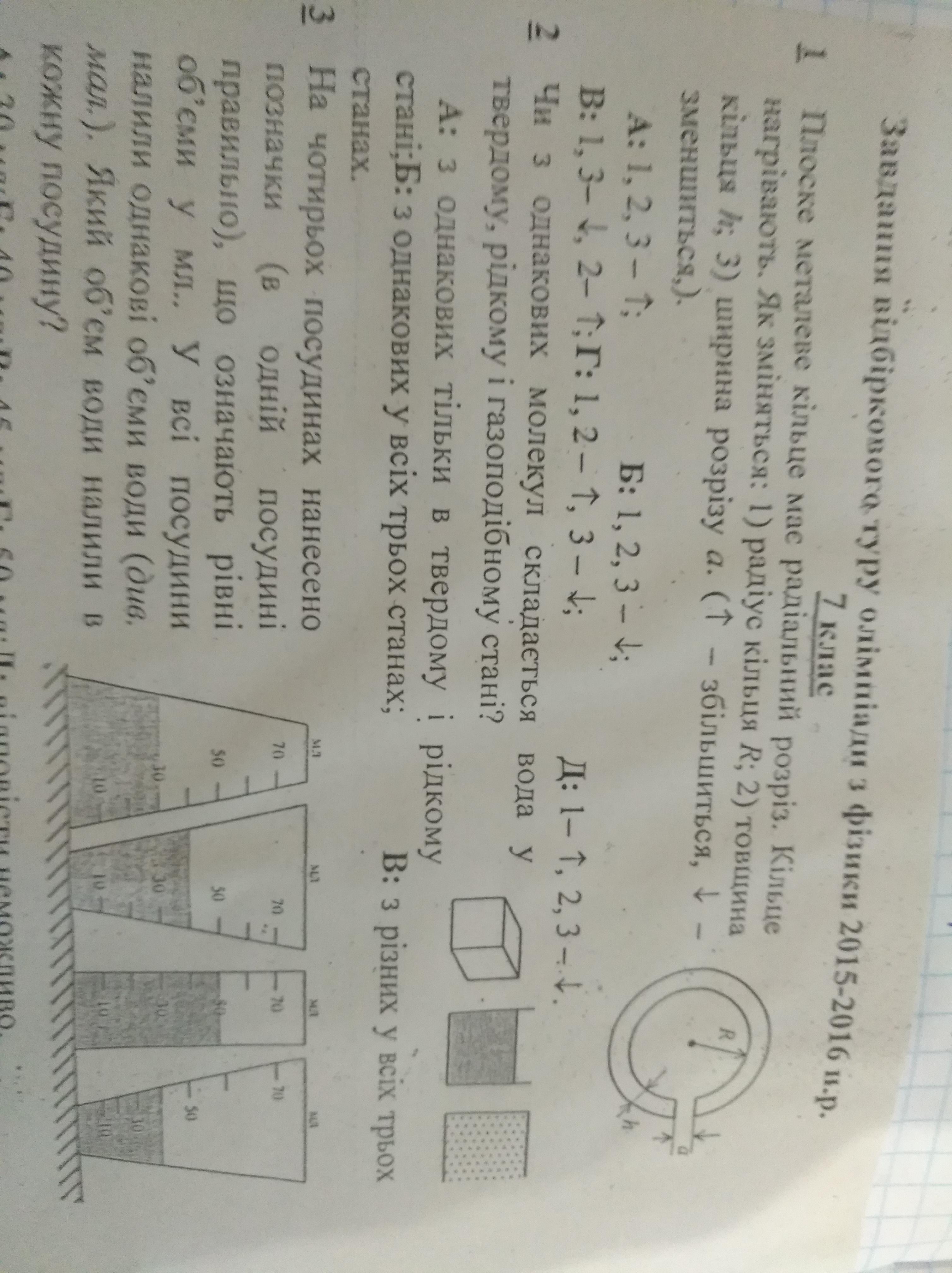 Радиус кольца при нагревании увеличится, h увеличится, a тоже увеличится.