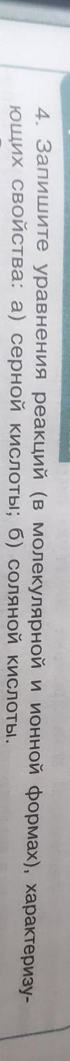 Запишите уравнения реакций в молекулярной и ионных формах характеризующие свойства 1)серной кислоты; 2)соляной кислоты.