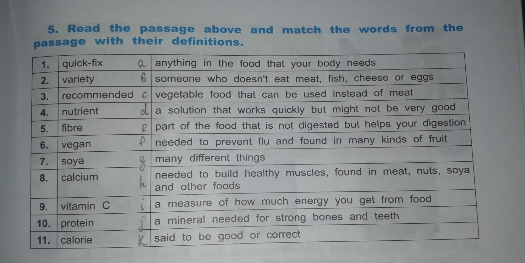 6. vegan - someone who doesn't eat meat, fish, cheese or eggs