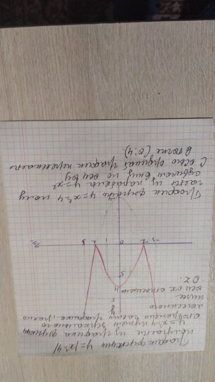 Построить график функции f(x) = |x^2 - 4| Найти точку пересечения графика с осью ординат. СРОЧНО ПОМОГИТЕ