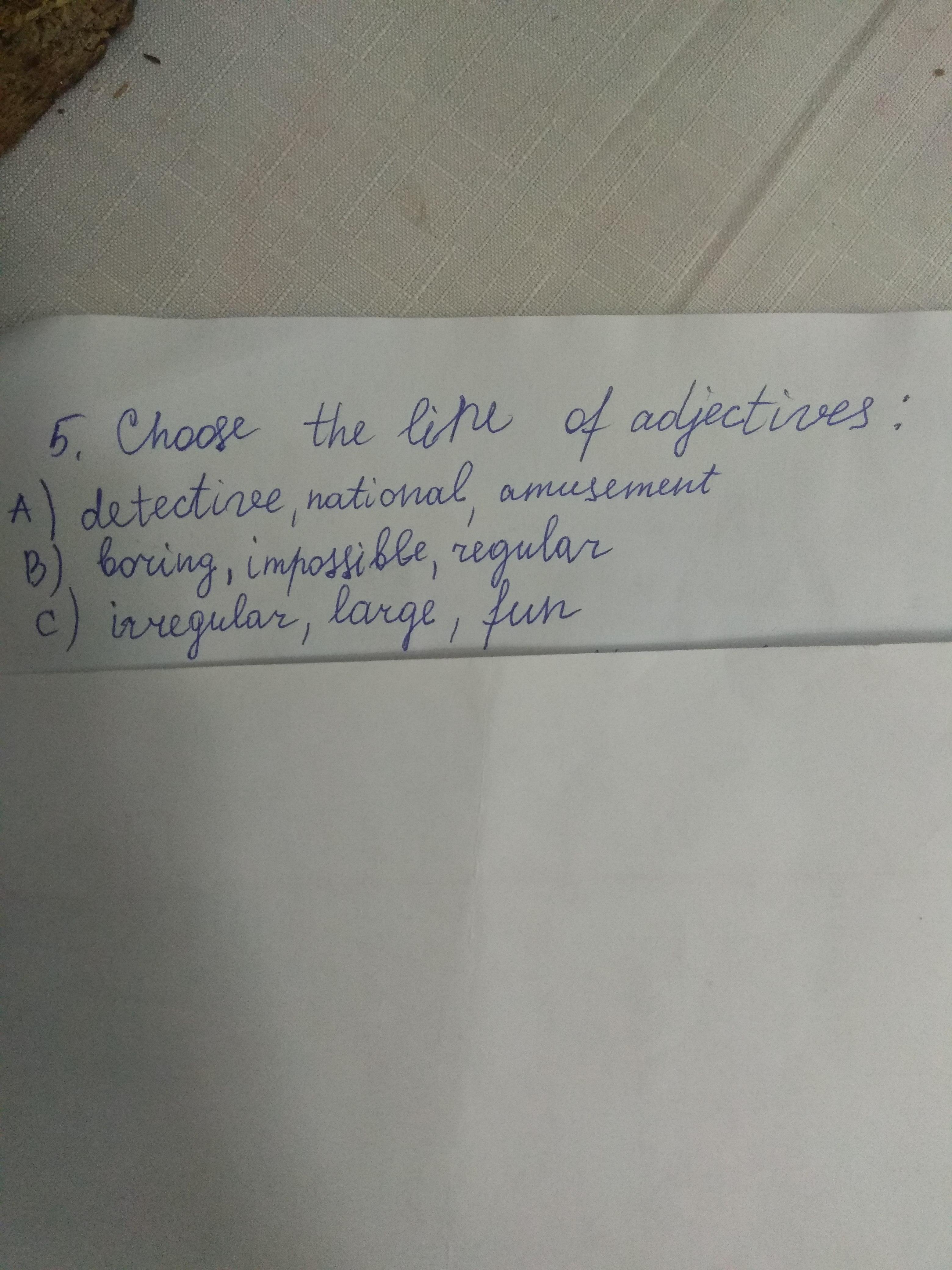 Думаю, что В, потому что в первой строке amusement не яаляется прилагательным, также, как и fun в третьей строке.
