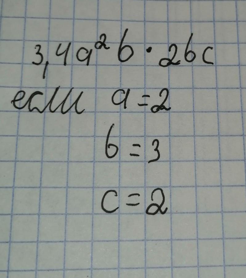 6,8a²b²c = 6.8 * 2² * 3² * 2 = 6.8 * 4 * 9 * 2 = 489,6