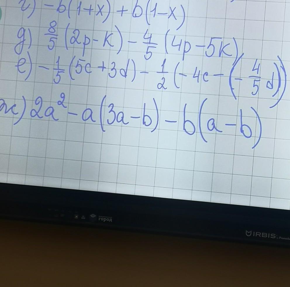 Ж)2a²-a(3a-b)-b(a-b) =2a²-3a²+ab -ab-b²= -a²-b²