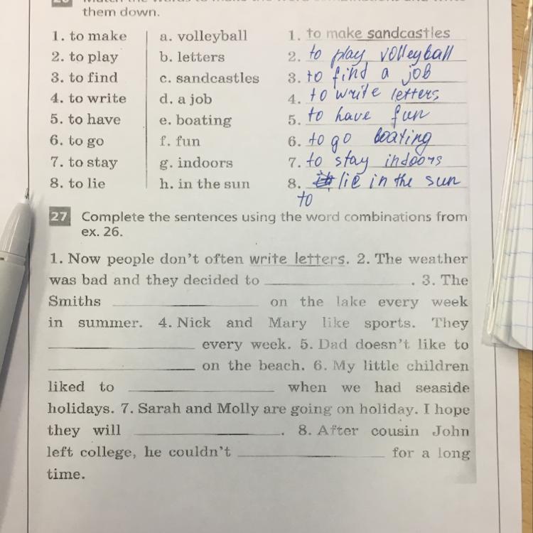 27 Complete the sentences using the word combinations from