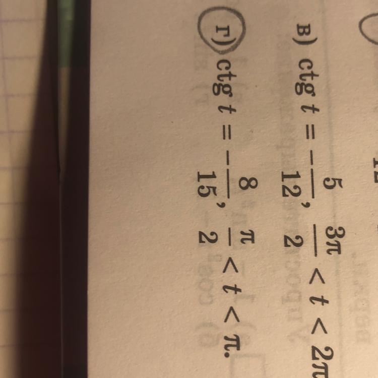cos t = -8/17(угол во 2 четверти,там косинус отрицательный)ЭТО НАДО УЧИТЫВАТЬ