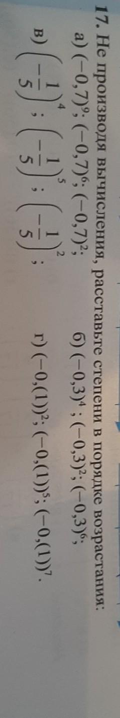 в) (-1/5)5;(-1/5)2;(-1/5)4. г) (-0,(1))7;(-0,(1))5;(-0,(1))2