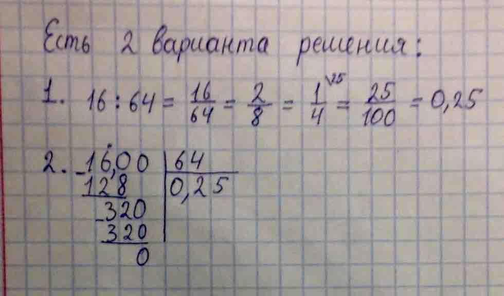 Поделите мне 16 на 64,а то плохо понимаю.(желательно фото решение будет удобнее)