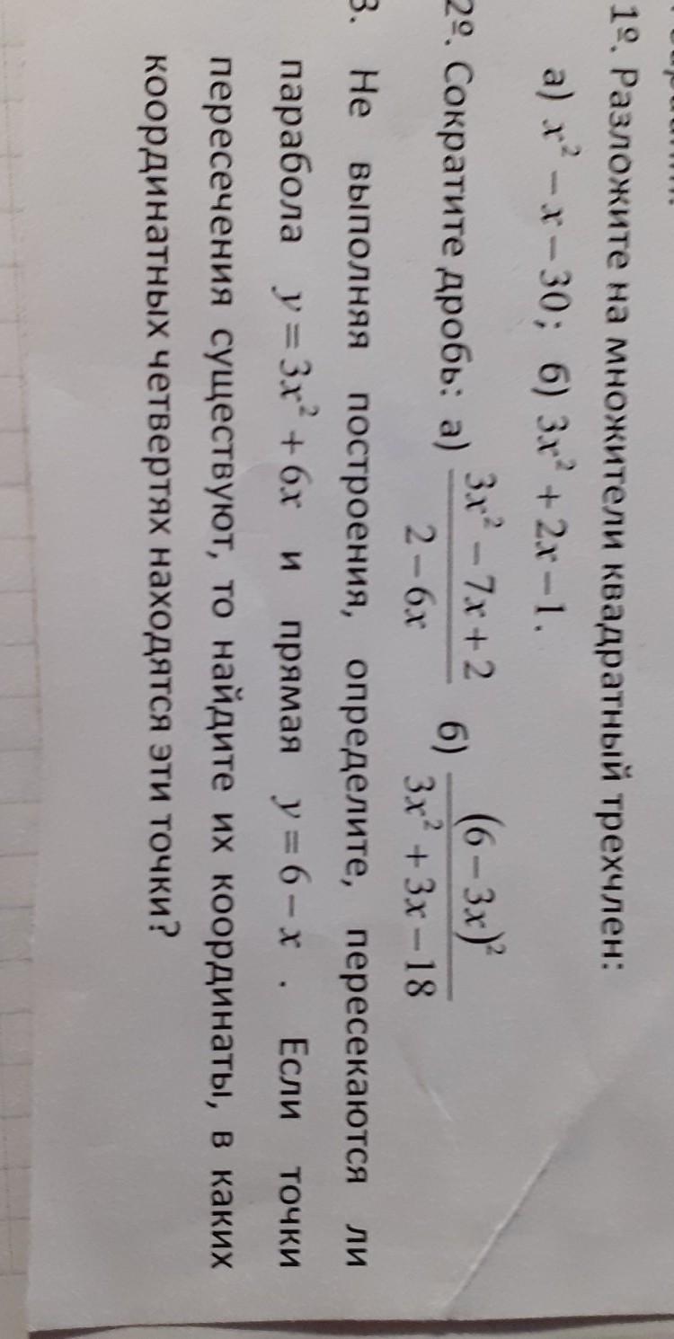 а) х” – х – 30; б) 3x* + 2x – 1.