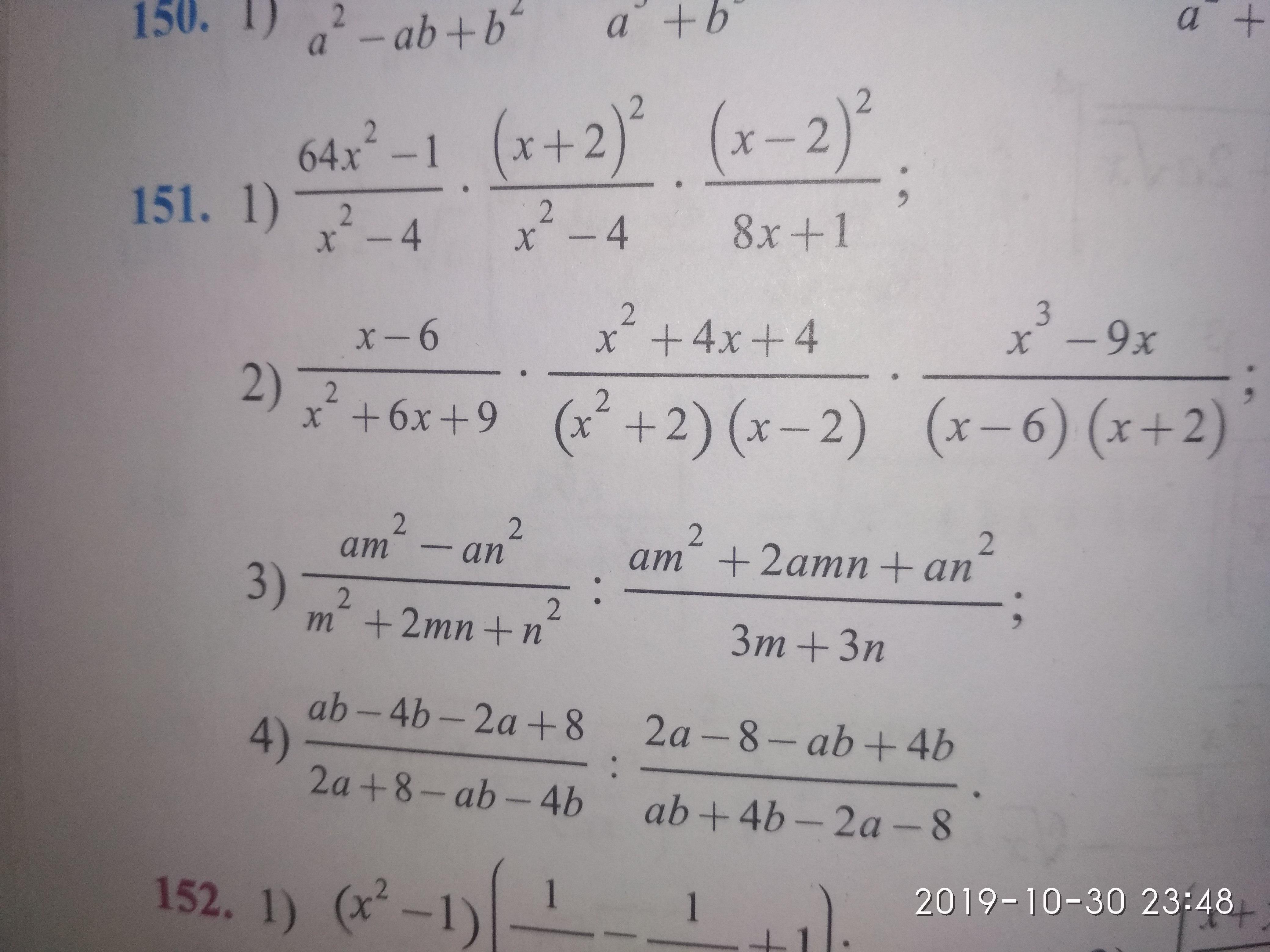 1. 8х-1 2. х3-х в крадраті-6х 3.ам-аn внизу під рисочкою m+n 4.4-a внизу під рисочкою a+4