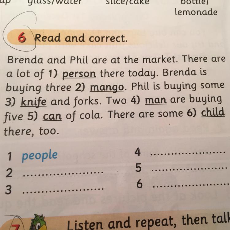 Brenda is buying three mangoes.Phil is buying some knives and forks.Two men