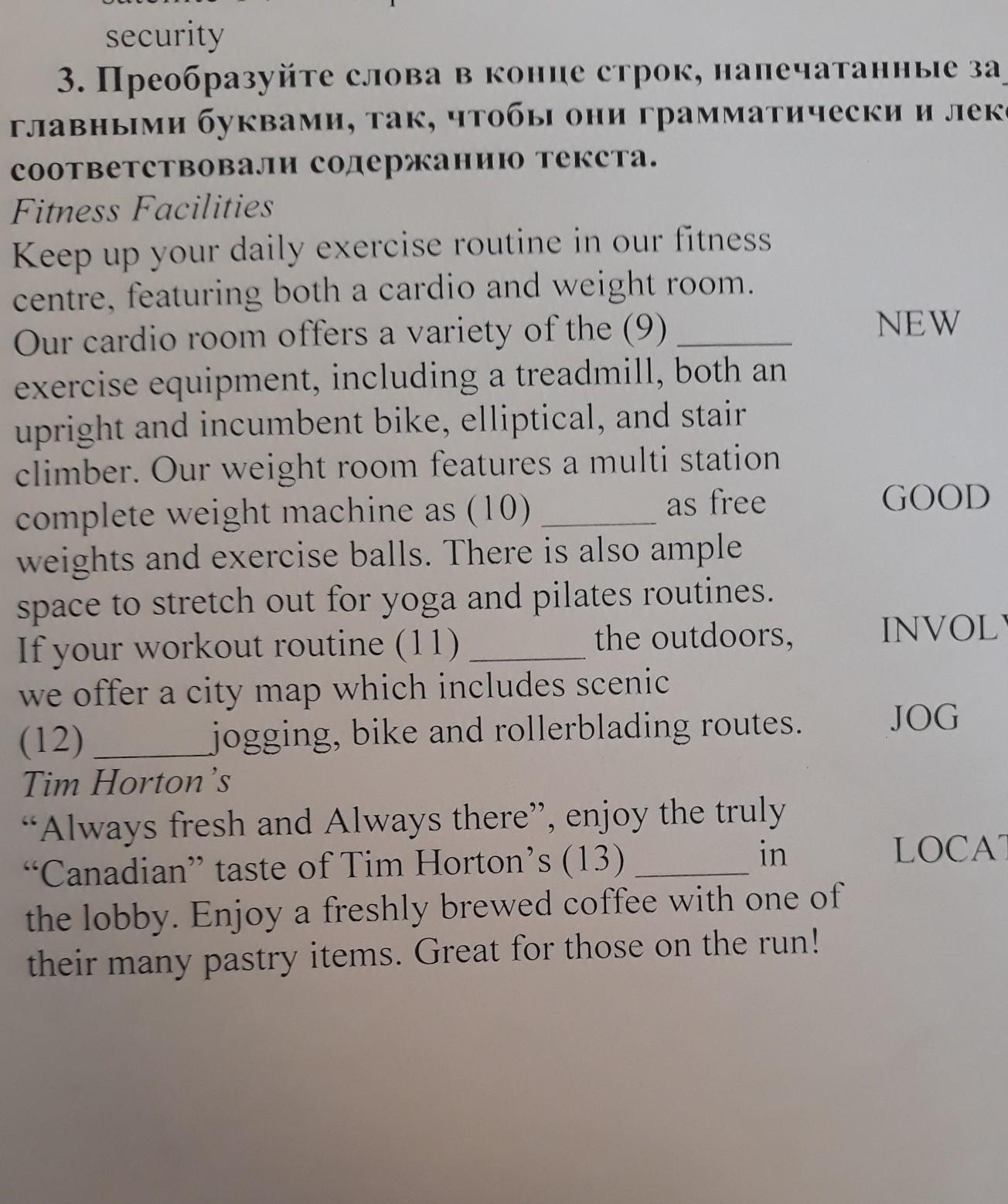 Преобразуйте слова в конце строк напечатанные заглавными буквами, так, чтобы они грамматическии и лексически соответствовали содержанию текста