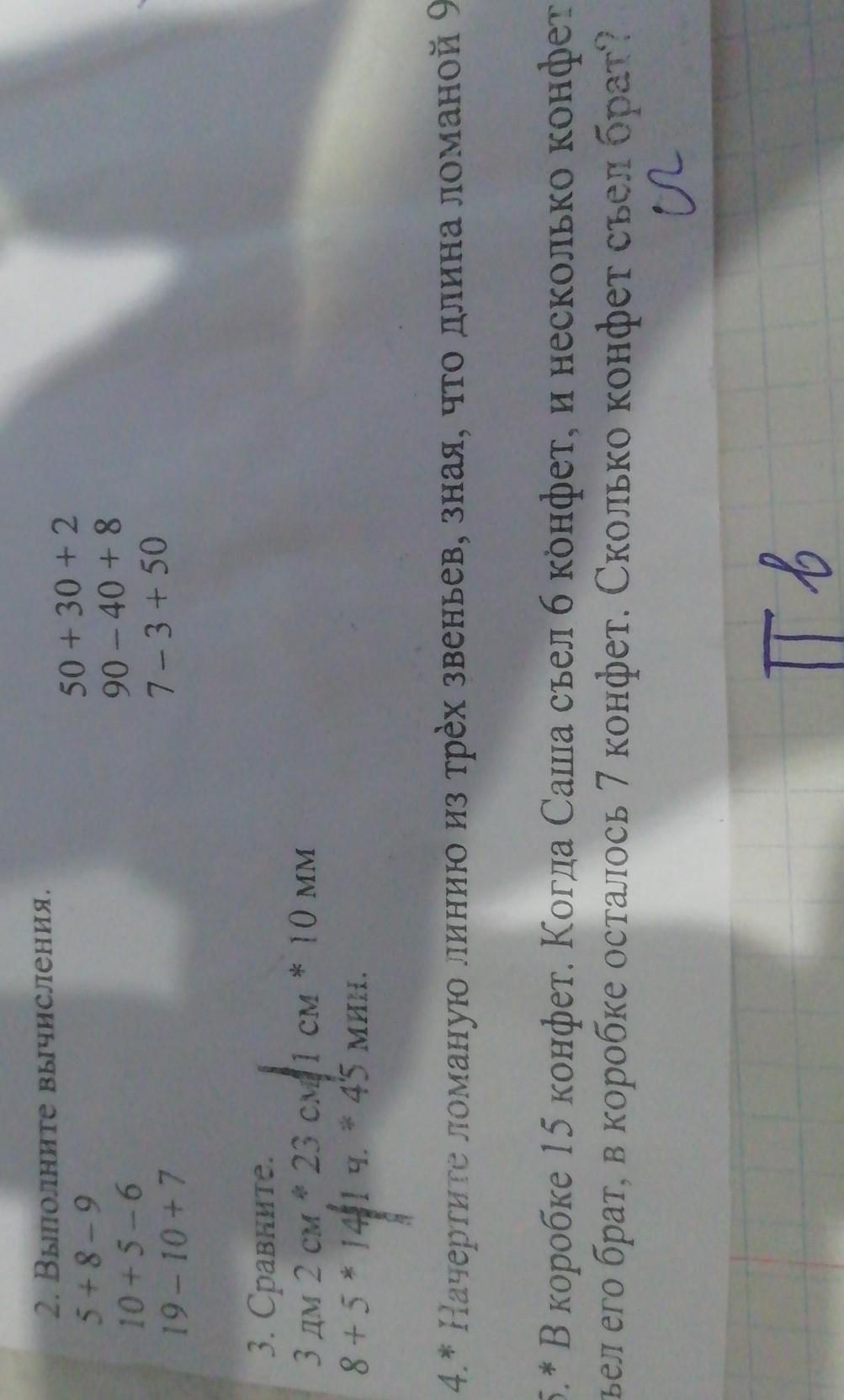 2) 9 - 7 = 2(конфет) - сколько конфет съел брат Сашы
