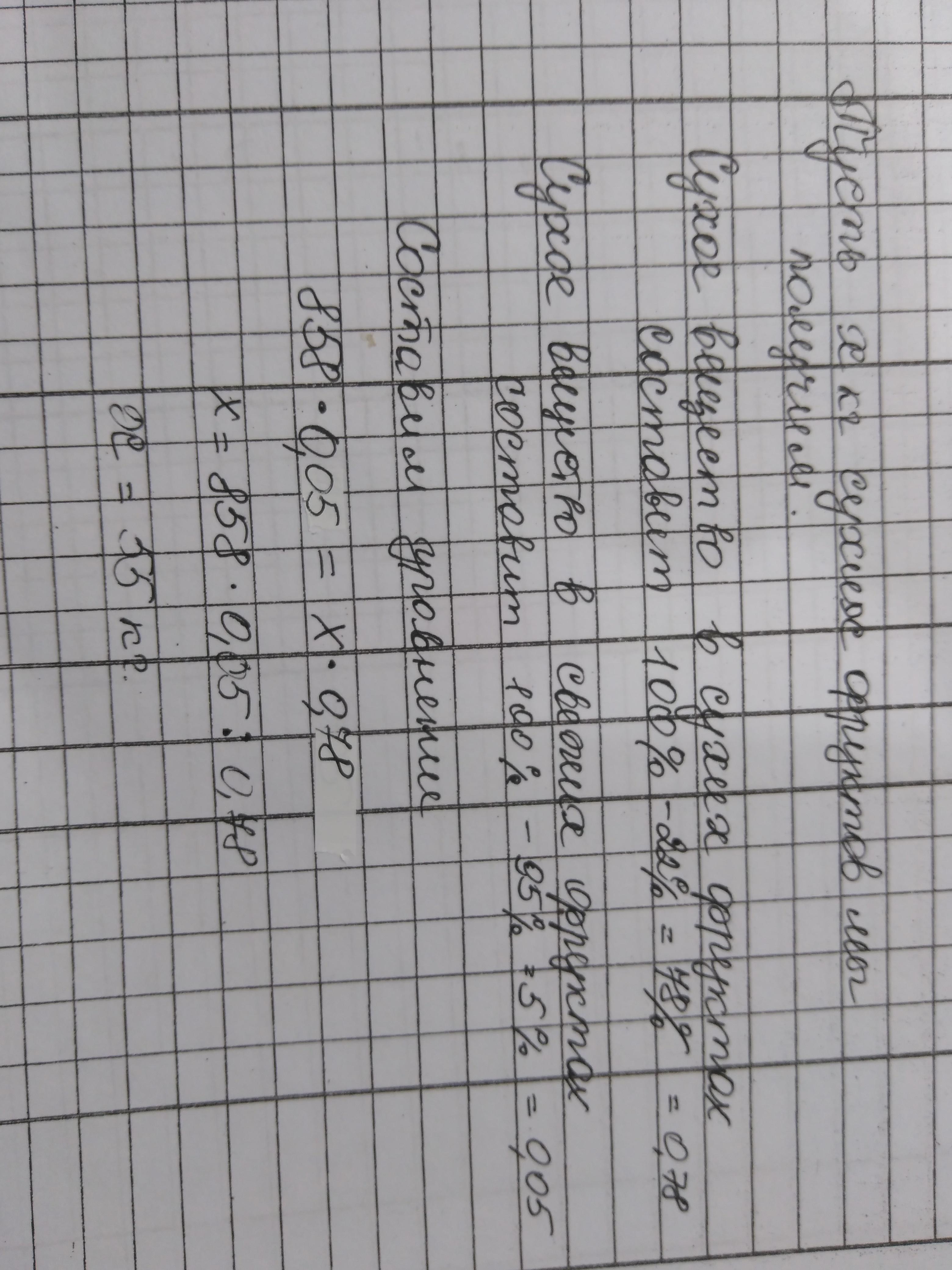 Свежие фрукты содержат 95% воды, а высушенные - 22%. Сколько сухих фрукто получится из 858 кг. свежих фруктов?