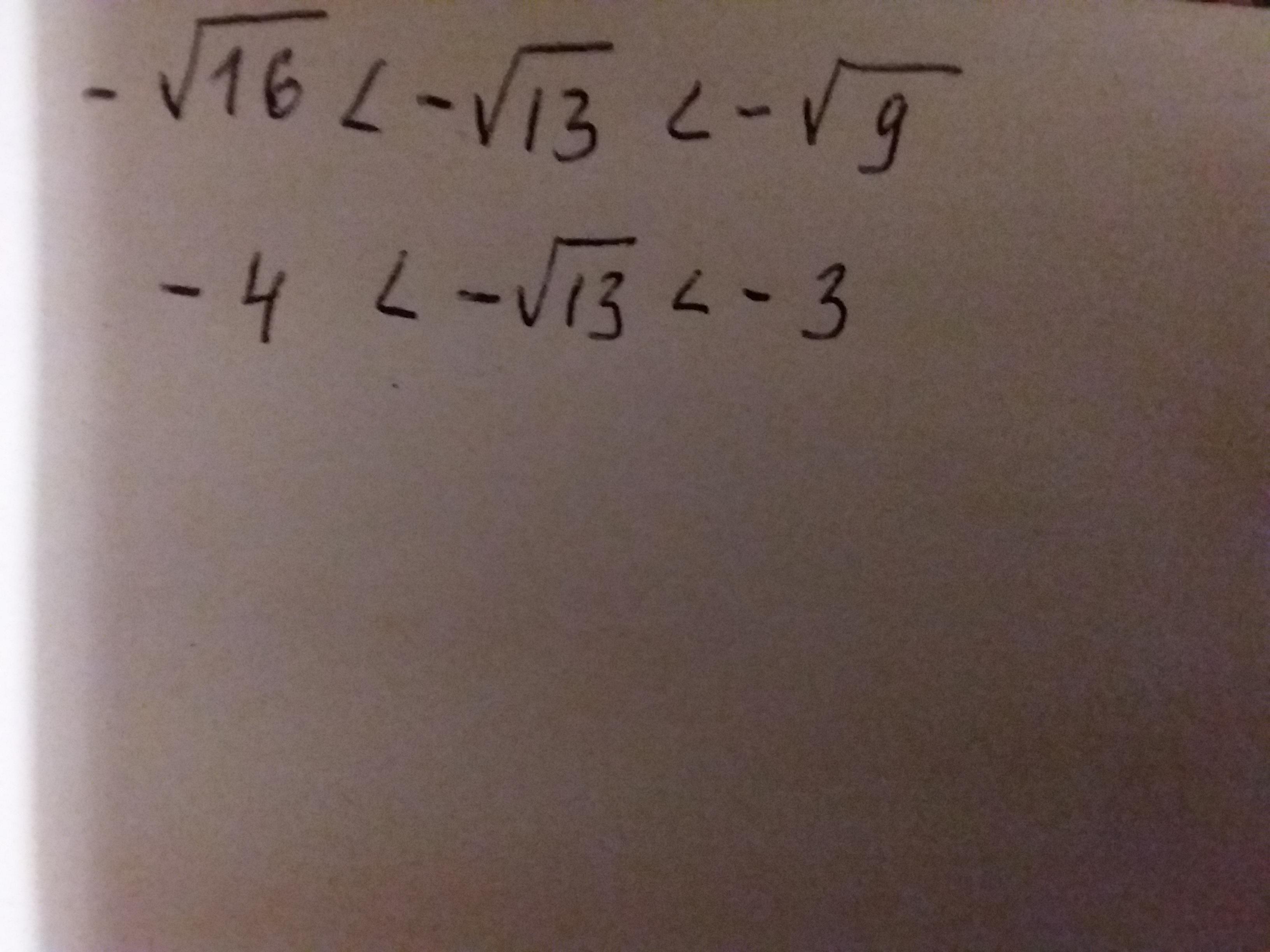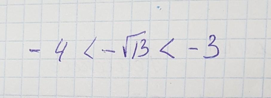 Найди два соседних целых числа, между которыми находится значение данного квадратного корня: −√13 .