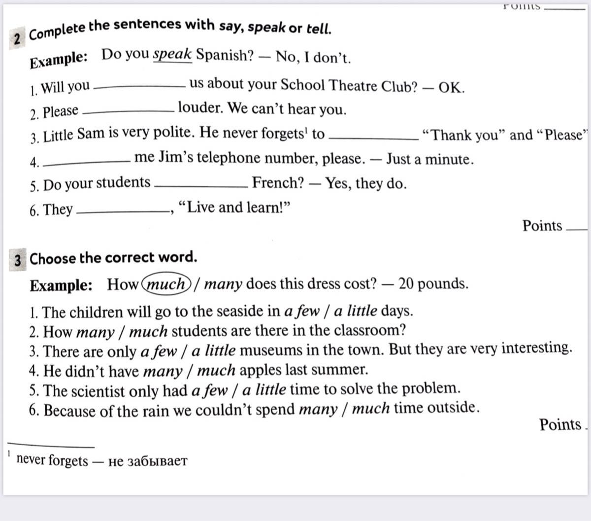 1. a few 2. how many 3. a few 4. many 5. a little 6. much