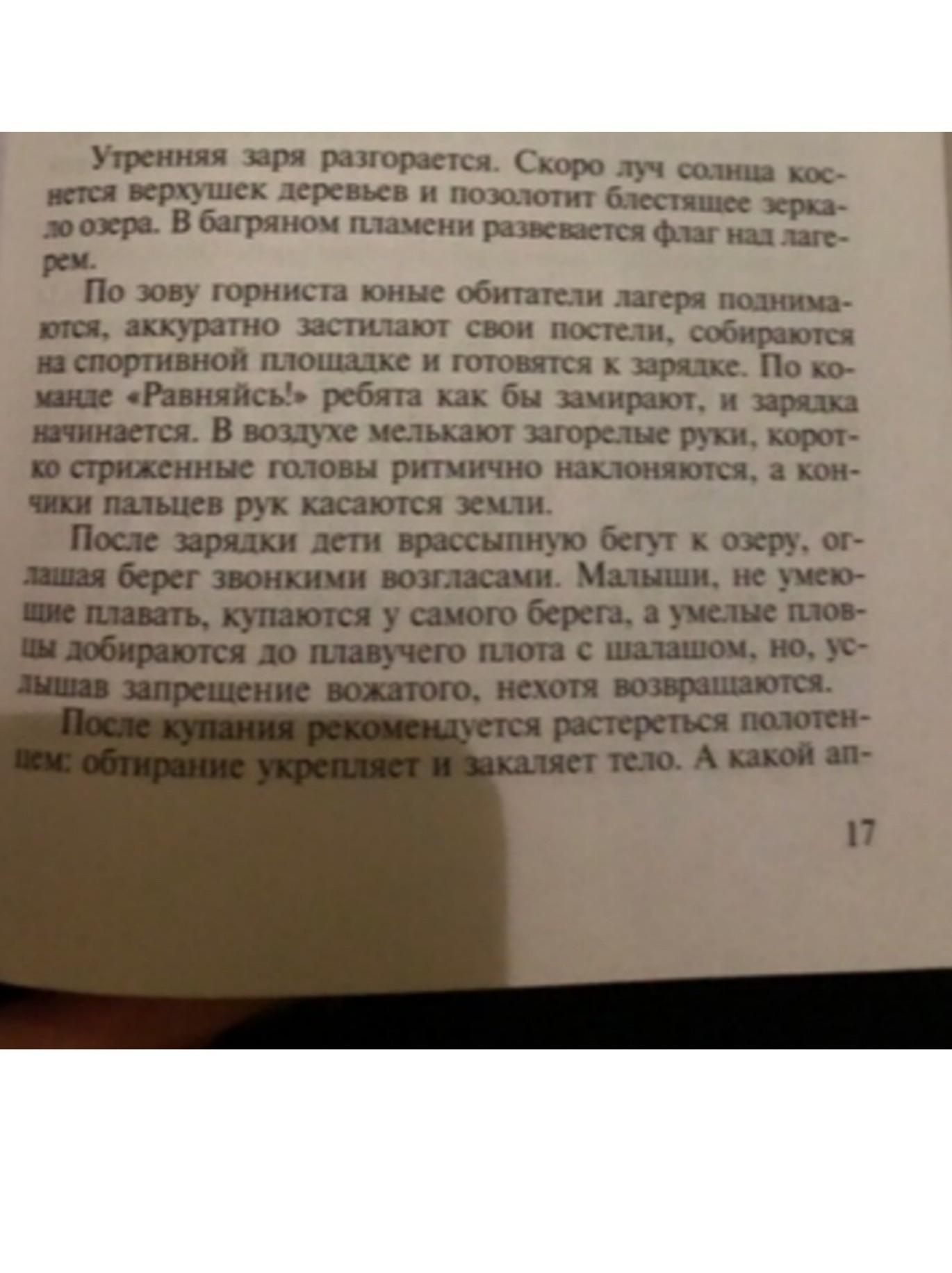 Метафоры: заря разгорается; луч солнца коснётся верхушек деревьев и позолотит блестящее зеркало озера; развевается флаг; зарядка начинается; мелькают руки; головы наклоняются; кончики пальцев рук касаются земли.