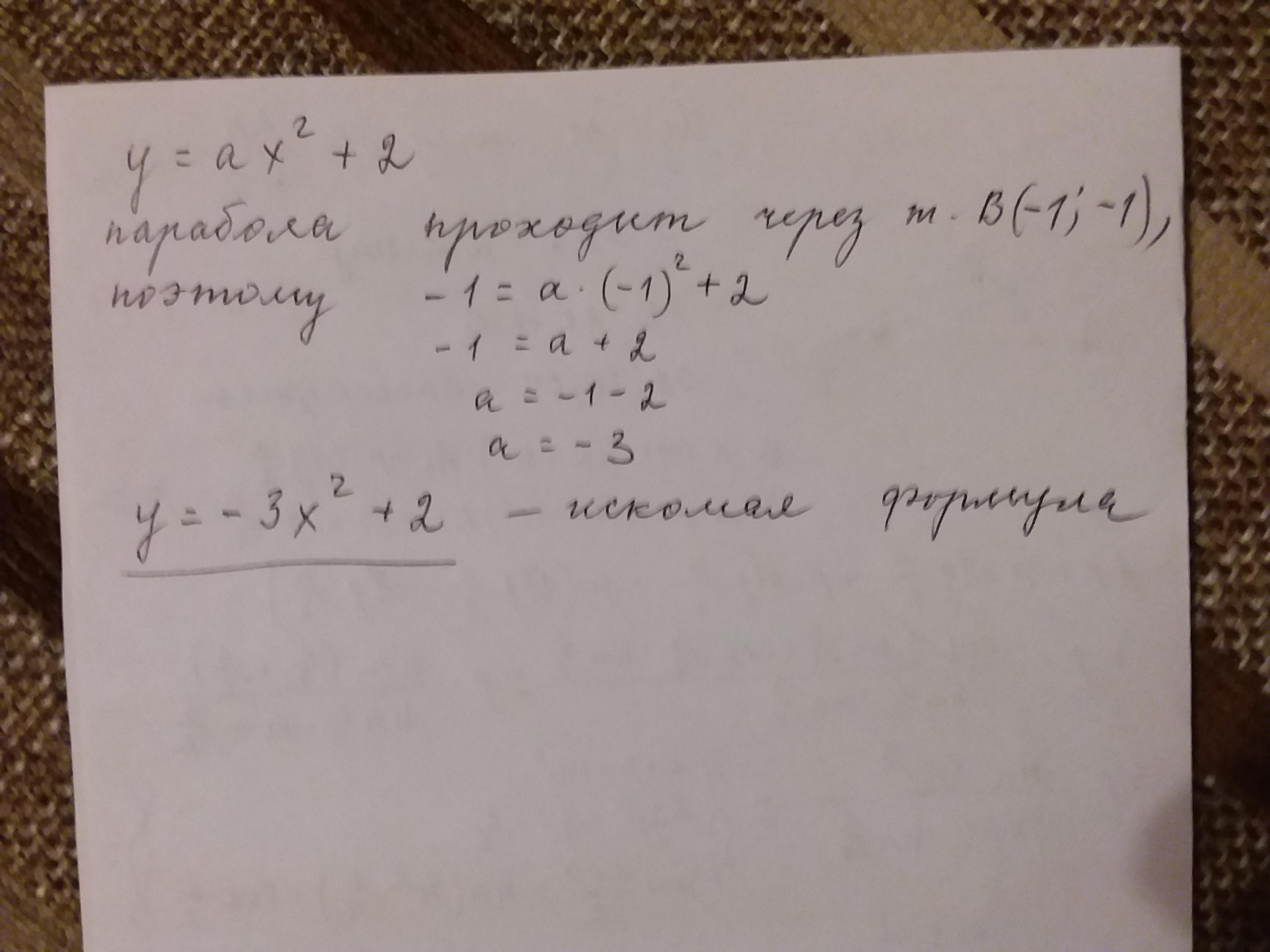 Какой формулой задана парабола, которая проходит через точку B (-1; -1) и вершина которой расположена в точке P (0; 2) на оси Oy