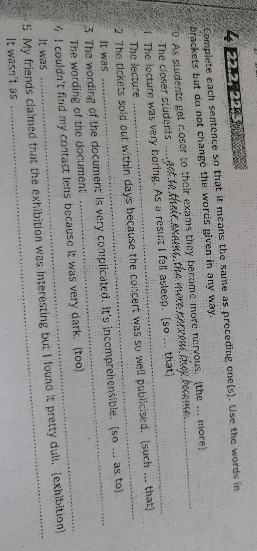 Complete each sentence so that it means the same as preceding one. Use the words in brackets but do not change the words given in any way
