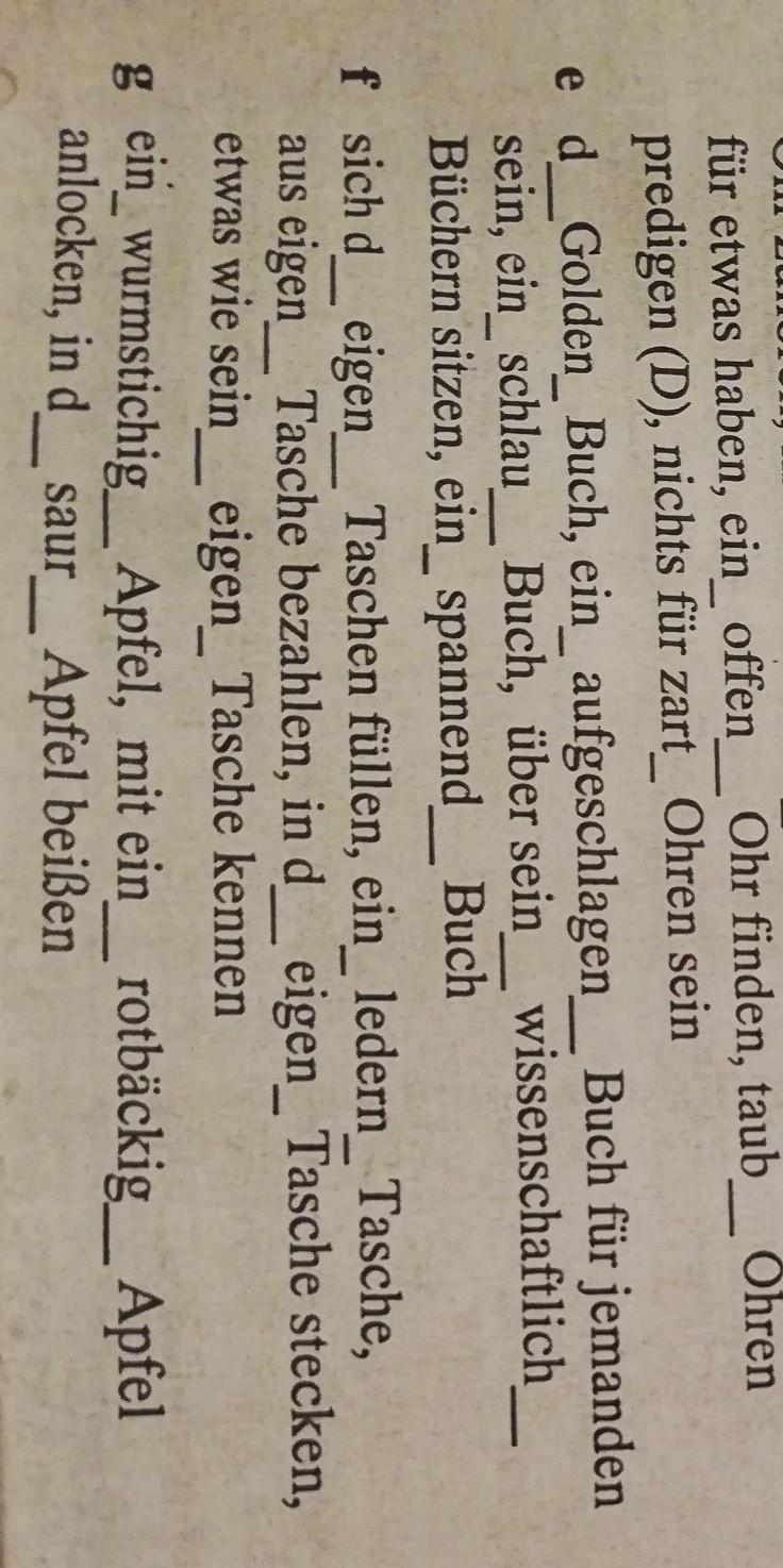 g. ein wurmstichiger; einem rotbäckigen; den sauren.