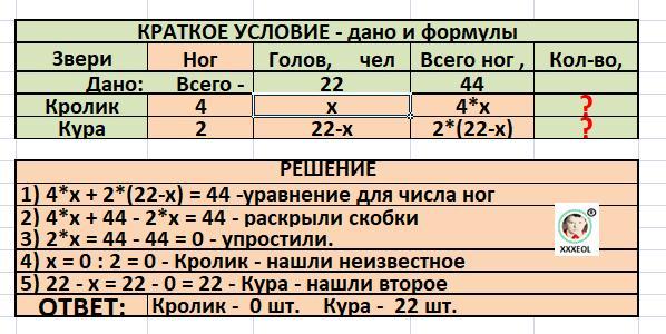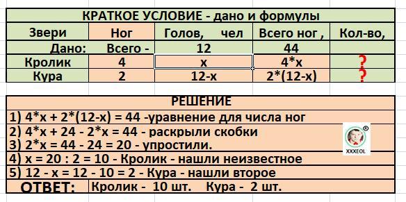 Фермер Густав имеет кроликов и кур в своей конюшне. Все животные вместе имеют 44 ноги. Создайте переменное уравнение, которое описывает все возможные комбинации количества кур и кроликов.