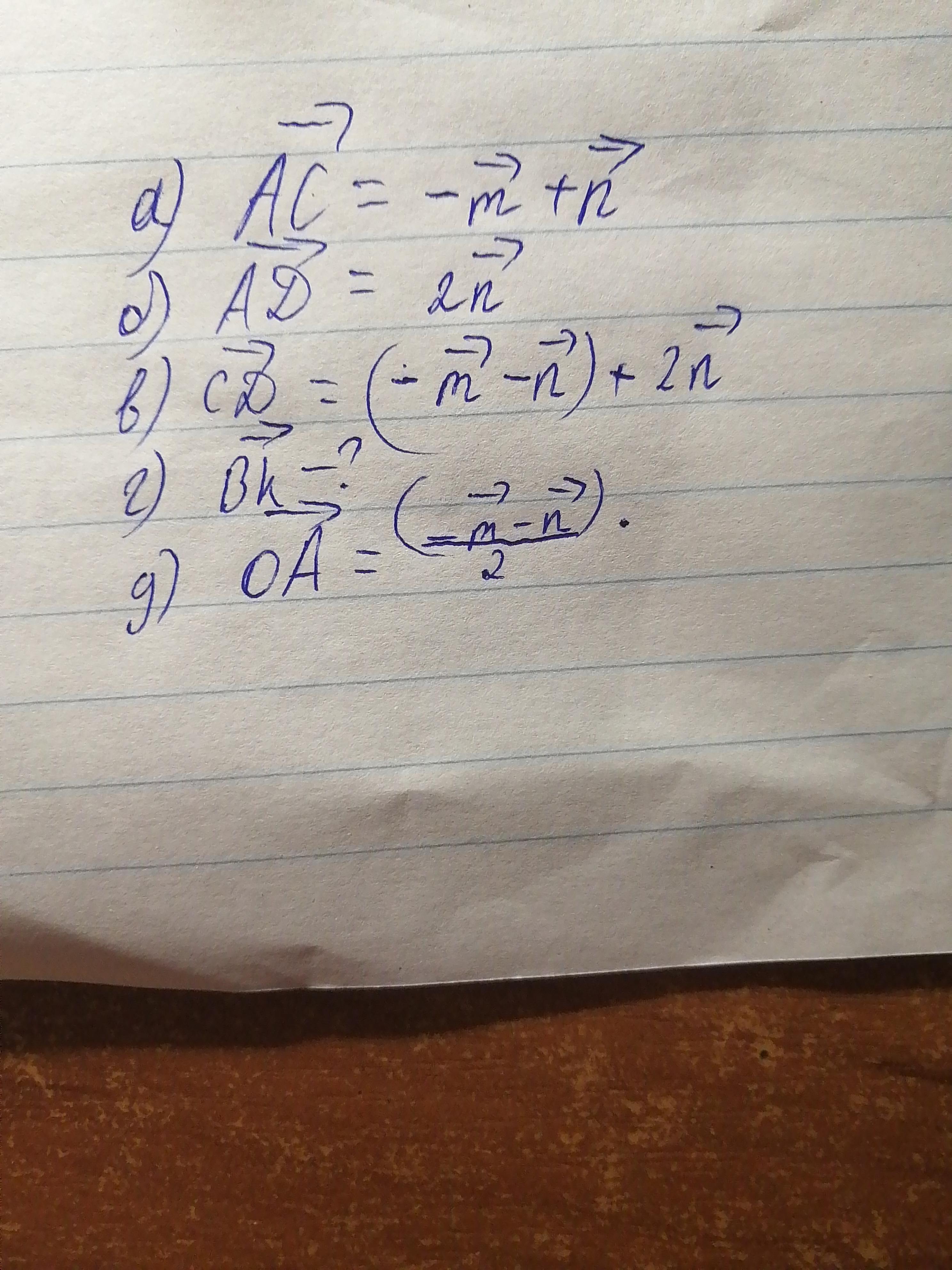 Выразить через вектора m и n: а)Вектор AC; б)Вектор AD через вектор n; в)Вектор CD через вектора m и n; г)Вектор BK через вектора m и n; д)Вектор OA через вектора m и n; е)Вектор DK через вектор n.