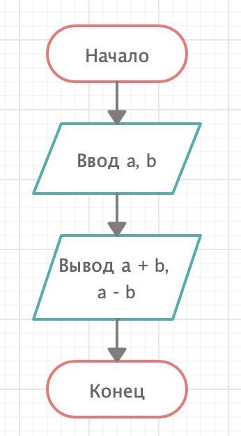 Составить блок-схему определения суммы и разности двух произвольных действительных чисел «а» и «в», являющейся исходными данными