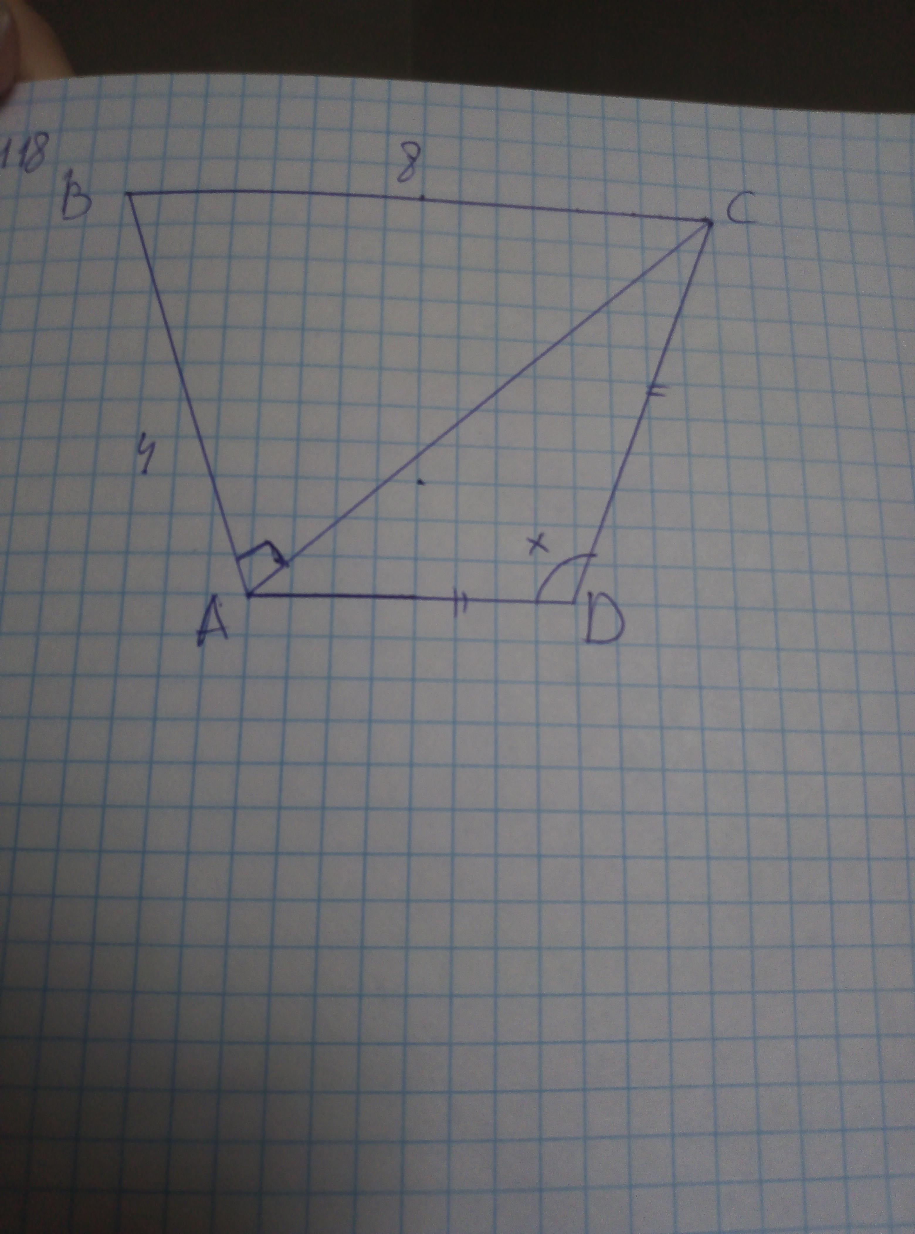 В Δ АВС катет АВ=4 ,гипотенуза равна 8. Значит ∠ВСА=30 ° . (катет, лежащий против угла в 30 град.,равен половине гипотенузы).