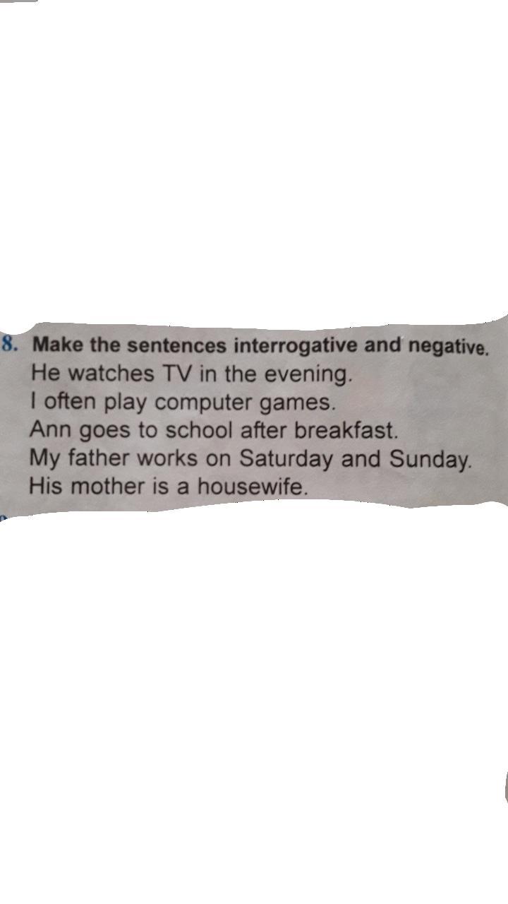 1.He doesn't watch TV in the evening.