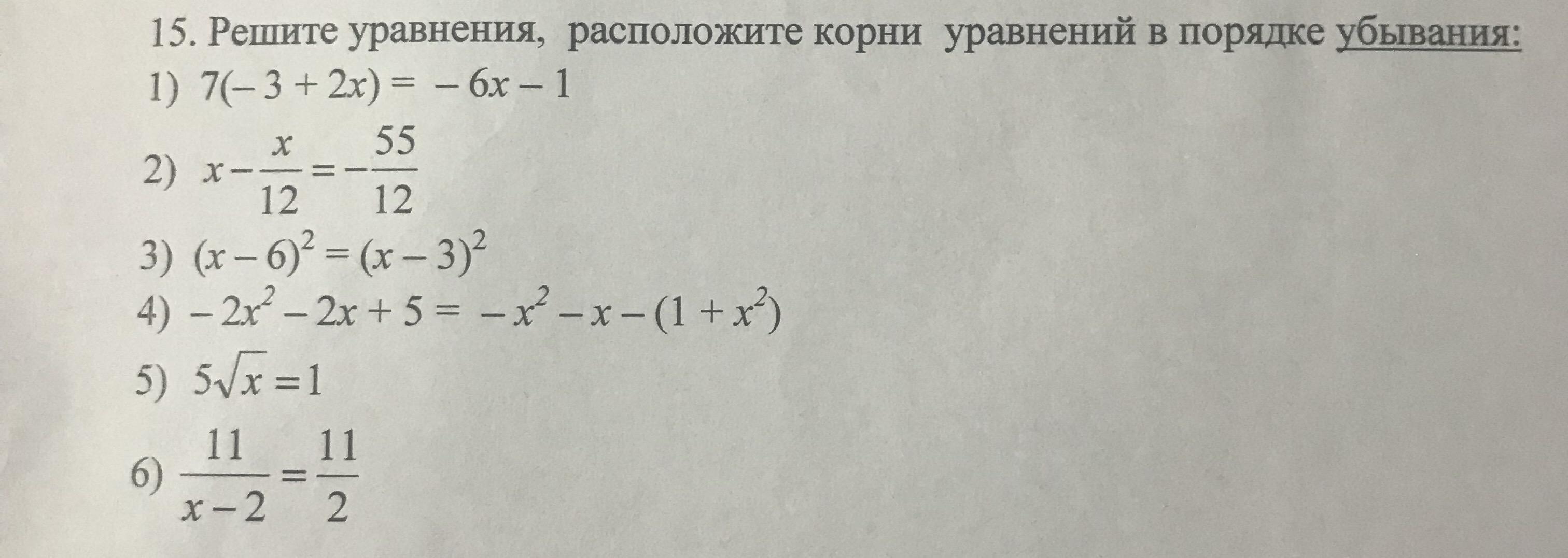 Решите уравнения, расположите корни уравнений в порядке убывания.