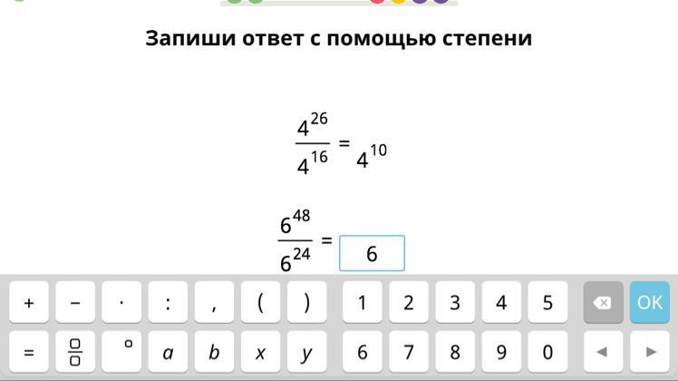 При делении степени с одинаковым основанием происходит вычитание степени, то есть ответ будет 6 в 24 степени (потому что 48-24=24)