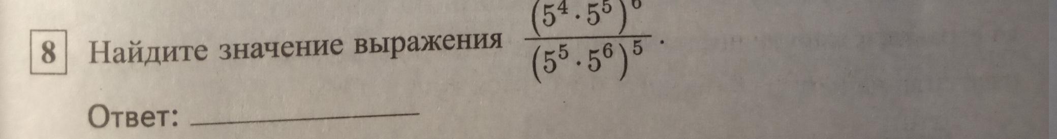(5^4*5^5)^6/(5^5*5^6)^5=(5^24*5^30)/5^25*5^30)=5^-1=1/5=0,2