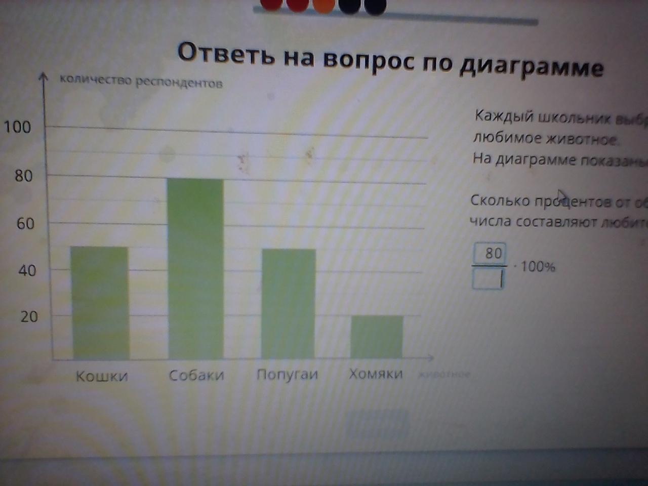 каждый школьник выбрал своё любимое животное на диаграмме показаны результаты сколько процентов от общего числа составляют любители собак