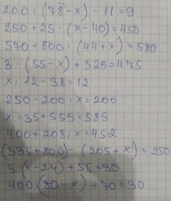 2)25*(×-40)=450-250 ; 25*(×-40)=200 ; ×-40=200:25 ; ×-40=8 ; ×=48