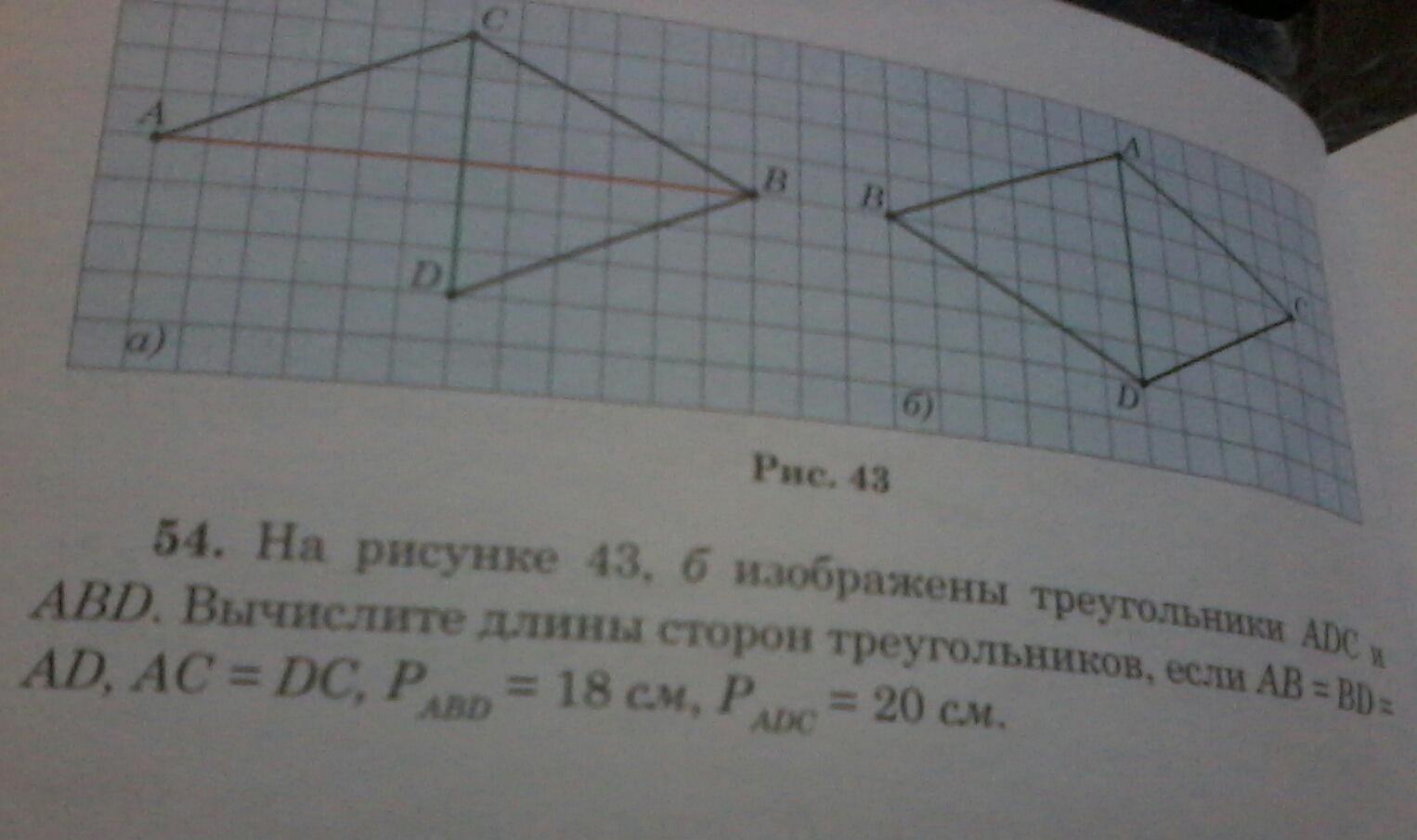 У треугольника ABD все стороны одинаковые, тоесть 18/3 = 6, каждая сторона 6 см, тогда АС и CD = 20 - 6 = 14